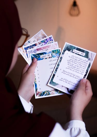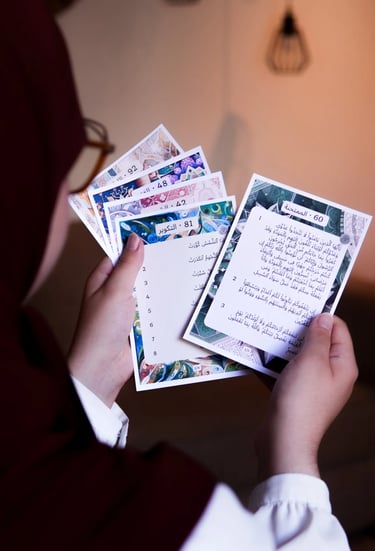 Tout, dans la conception des fiches Tashil, a été fait pour faciliter ta mémorisation. Elles sont petites pour ne pas être encombrantes, légères pour ne pas que tu te fatigues, les versets y sont écrits assez grands pour que tu puisses les lire de loin... Mais au-delà de l'aspect pratique, elles ont aussi un impact sur la chimie de ton cerveau : lorsque tu as appris les versets d'une fiche, de la dopamine est libérée par ton esprit, ce qui t'encourage dans ton apprentissage. Si tu souhaites comprendre les mécanismes de l'esprit pour optimiser ton apprentissage du Coran, notre compte Instagram est dédié à ce sujet.